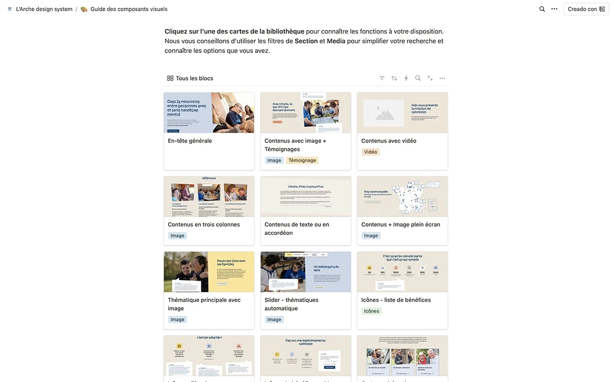 En vista que la web irá escalando decidimos crear una biblioteca de bloques; aquí explicamos detalladamente cómo sacar provecho de los recursos que se diseñaron, guíamos al usuario en el proceso de creación o edición y relacionamos otros contenidos del sistema.
